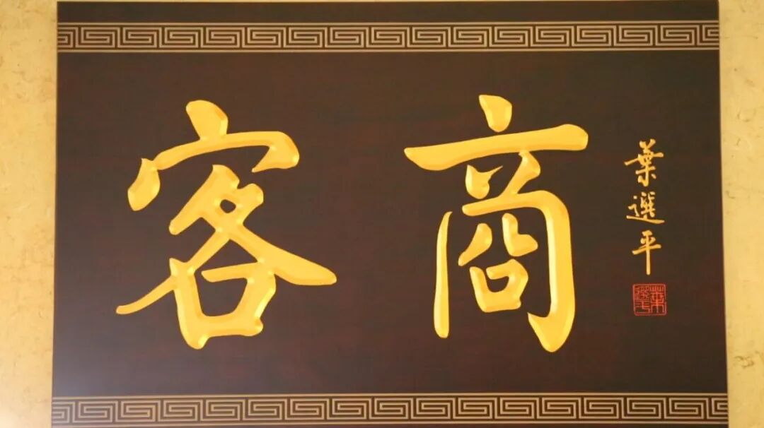 图为全国政协原副主席叶选平为广东省客家商会题字“客商”