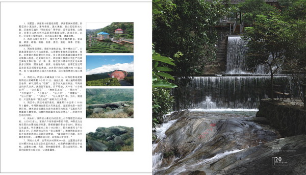 2、西岩山茶叶加工厂:茶叶生产加工程序繁多,有采摘、晒青、晾青、抛青、刹青、揉捻、速包、球茶、打散、烘烤等程序。 3、西岩茶场场部:场部兴建有宾馆、茶叶精加工厂。公路直通茶场的几个山坡顶部,山顶塑有紫红色巨型茶壶、茶杯,在青翠的茶田里分外夺目。登上两层的高瞻远瞩凉亭可远眺群山秀色,近览西岩风光。西岩茶叶集团公司生产的西竺牌乌龙茶以香、甘、清、滑、醇优质口感和天然无污染荣获多次国际、国家金奖、银奖,名扬海内外。在茶艺馆还可品赏香茗及观看茶艺表演。功夫茶的泡饮流程共有 18 道工序,前 12 道由茶艺小姐为大家表演,后 6 道则需游人细心领会。 4、西岩山:西岩山主峰海拔 1256 m,从西岩茶场起程到西岩山顶峰需要 1 小时 30 分,途经之处,满山遍野都是形态各异、神气活现的“石雕”,显示出大自然奔放、不拘章法的非凡功夫,真是美不胜收,目不暇接,其中有“小京城北坪”、“公鸡髻石”、“清泉石上流”、“西竺寺”、“天狗望月”、“七星石”、“仙人桥”、“撑腰石”、“仙人打鼓”、“飞来石”、“仙人茶壶”等。另外,倒插竹、片生熟鱼和“星光灿烂”被称为三大奇观。 5、西竺寺:西竺寺建于唐代,清康熙二十五年( 1686 年)重修,寺周围墙全是石头天然生成,连屋顶也是一块天然巨岩。清末进士杨壁远为该寺庙撰写的对联“石盖自天开倒覆掌平摩僧顶,山峰持地起面立当空显佛头”,是西竺寺生动的写照。