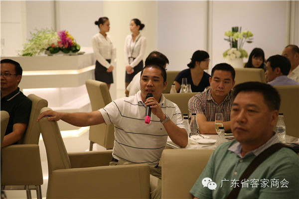 看过酷炫豪华的名车,感受了浓厚的汽车文化,陈祥达总经理安排客商们进行交流座谈。为了让大家在轻松自由的氛围中互动,还特意安排了四人一桌自由组合的座位安排,并为大家呈上了精致的香槟美酒。“我觉得,客家情就像香槟一样清香,值得回味,希望客商们多交流、多探讨,共同发展。”陈祥达说。